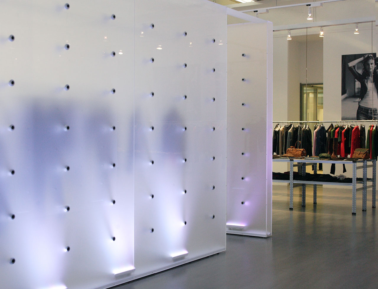 Satin-finished plexiglass offers interesting possibilities for dividers, play of light, and transparencies.