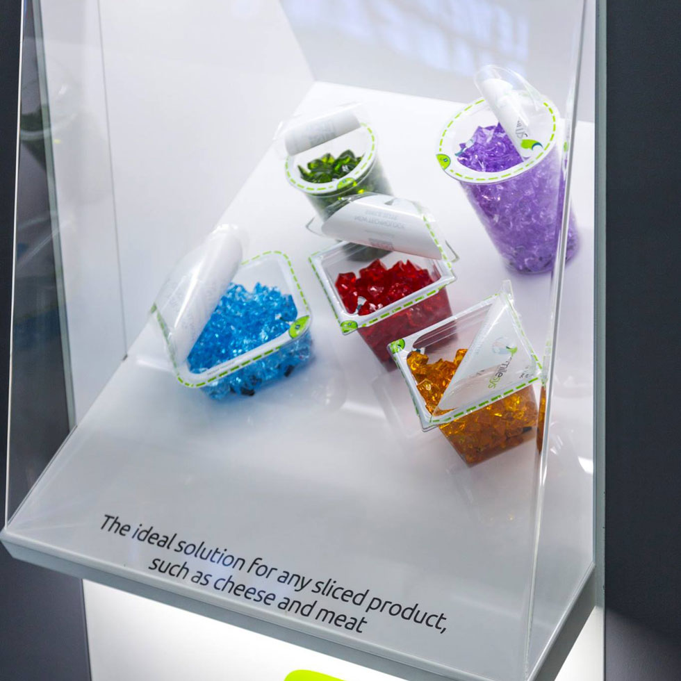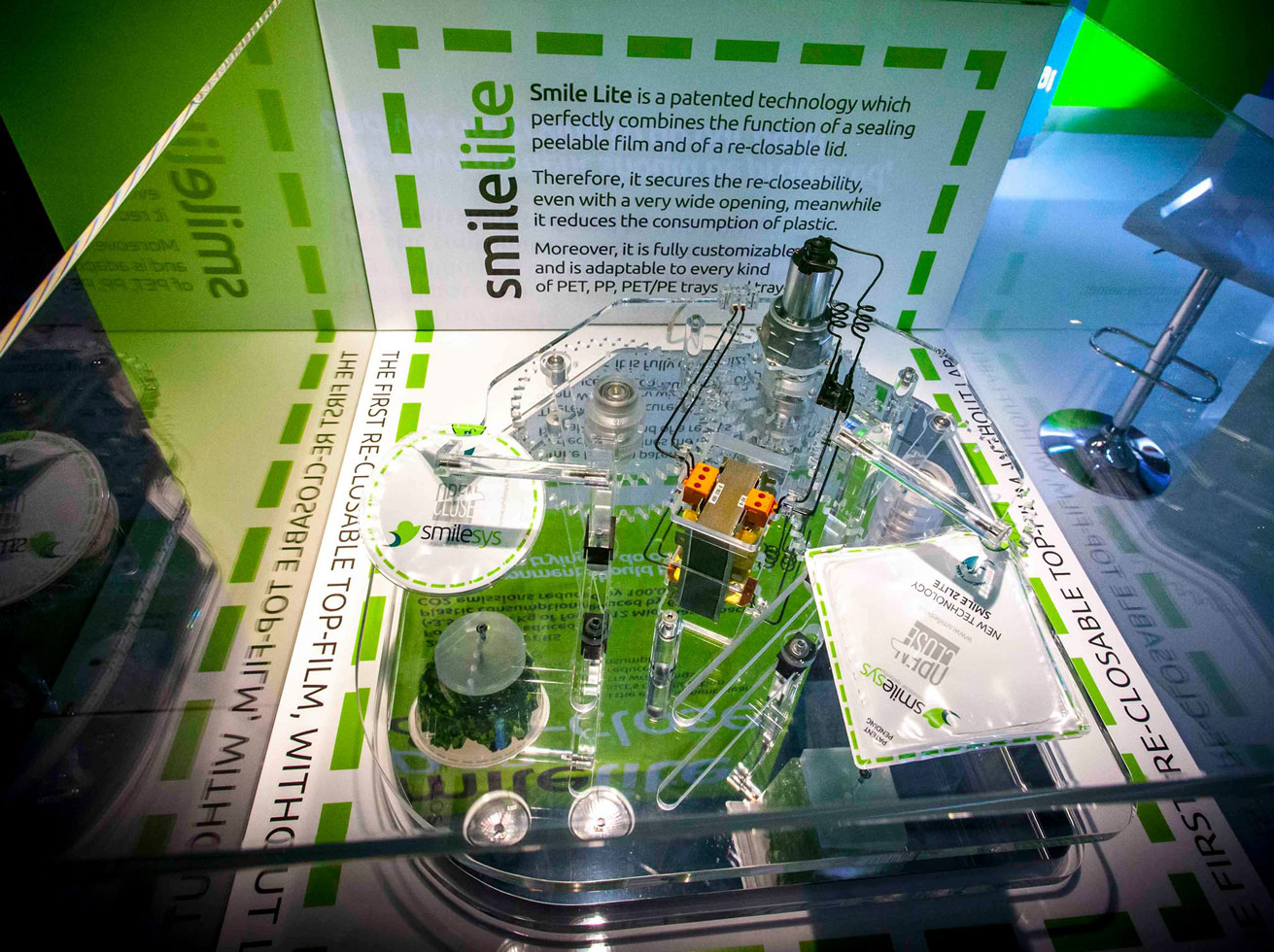 Hangarfusina, da sempre predisposta alla creazione in chiave originale di ausili per l’esposizione, ha prodotto le particolari teche espositive dei prodotti di packaging, valorizzando il tutto con l’originale display dinamico in plexiglass trasparente, che permette di dare dimostrazione effettiva dell’efficacia del prodotto.