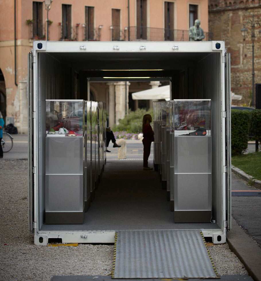 Un interessante Progetto nato dalla collaborazione con Vicenzaoro, posizionato frontalmente a Palazzo Chiericati di Andrea Palladio, a Vicenza. Il progetto rende omaggio alle creazioni più iconiche del design storico italiano. Hangar Fusina ha ideato teche museali che sfruttano trasparenze, superfici satinate del plexiglass e tecnologia backlight, dando vita a un suggestivo effetto luminoso a valorizzare gli oggetti esposti.